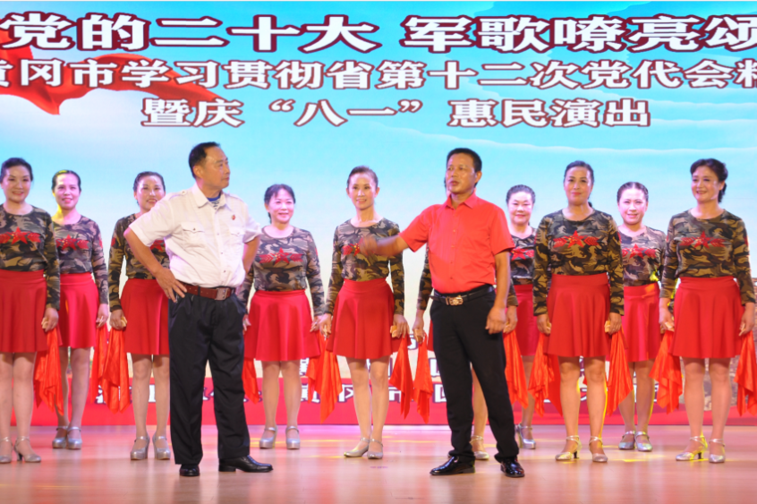 7月27日、30日晚上,黄冈市“喜迎二十大 礼赞新时代”黄冈市学习贯彻省第十二次党代会精神暨庆“八一”文化惠民演出在黄州举行,市文化和旅游局、市退役军人事务局及黄州区有关部门领导出席观看,线上及线下近2万人观看。