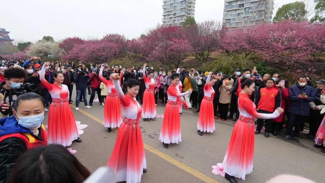 2月18日上午,遗爱湖公园梅园张灯结彩,热闹非凡,由东坡庙会筹委会主办,市文旅局、市城管委、黄州区人民政府承办的东坡庙会·2023花季·黄州梅开园仪式在这里成功举行。市委副书记、政法委书记金鑫,市委常委、宣传部长李初敏,副市长马艳舟,市政协副主席、黄州区委书记夏志东及市区相关部门负责人、近万名市民和游客现场观看,直播黄冈等各级媒体进行网络直播,截止目前,线上近700余万人观看。