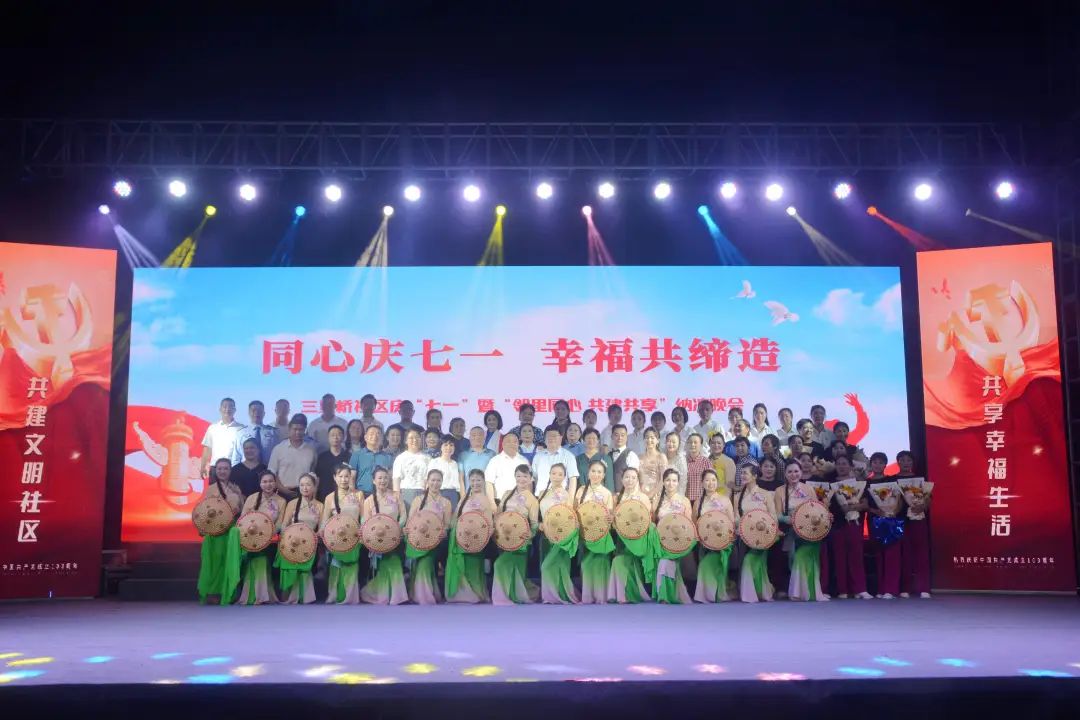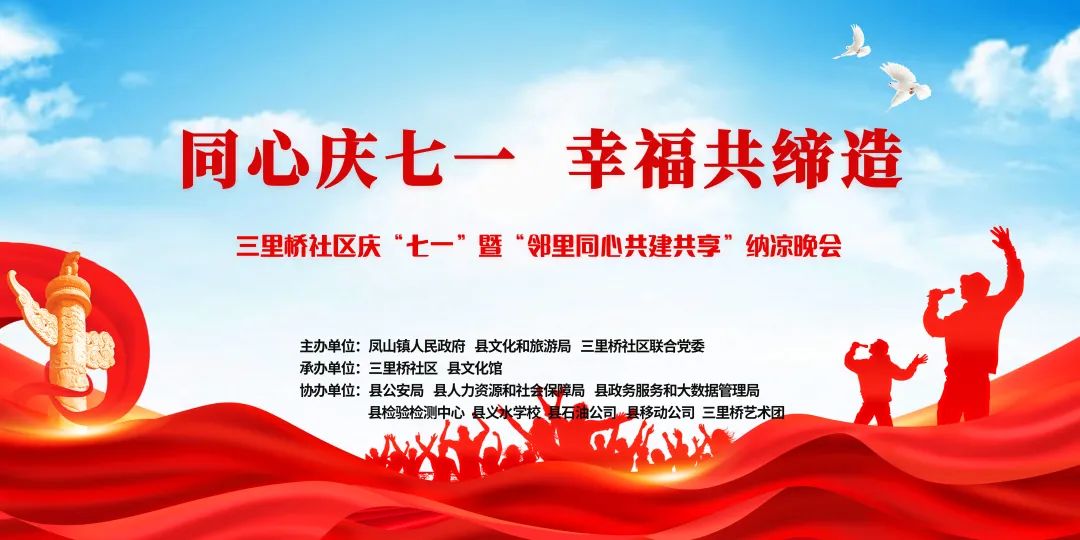 县政协副主席周广才,县政协三级调研员祝长江,凤山镇党委副书记、镇长何大平及县文旅局、县公安局、县人社局、县政数局、县公共检测中心、县石油公司、县移动公司、义水学校等七个共建单位领导及附近居民欢聚一堂,载歌载舞,共同庆祝党的生日。