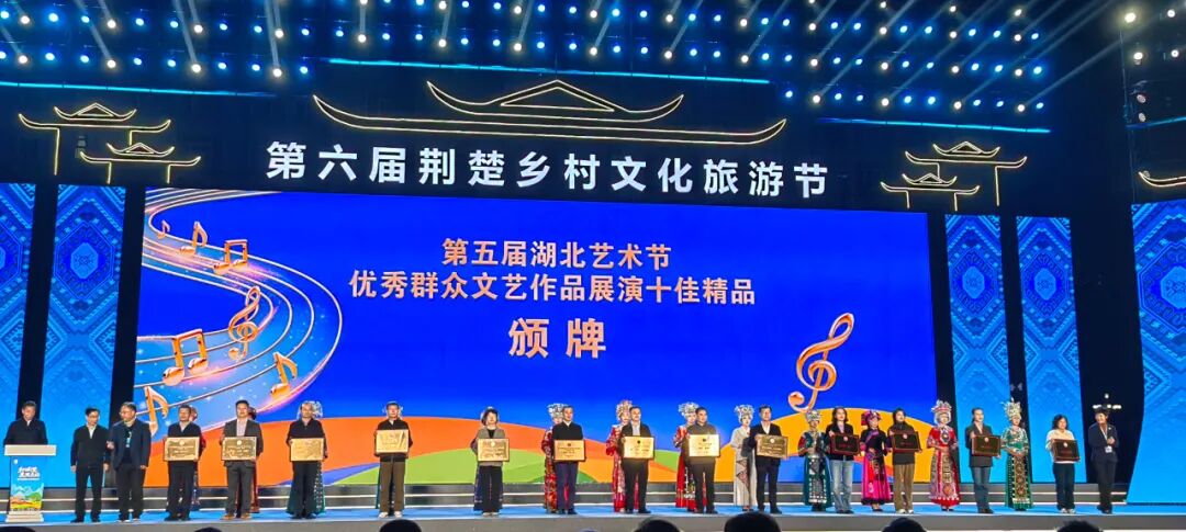 开幕式上,省人大常委会委员、教科文卫委员会主任委员郭忠,省委宣传部副部长向红林等领导嘉宾为第五届湖北艺术节优秀群众文艺作品展演十佳精品颁发奖牌,由黄冈市文化和旅游局推荐的蕲春县舞蹈作品《艾之濯》荣获“十佳精品”奖。现场还发布了湖北十大乡村主题旅游精品线路,我市李时珍文化旅游区、东坡赤壁、潘家湾景区、环大别山旅游路、黄梅中秋祭月、七里坪长胜街分别入选农耕文化遗产之旅、乡村美食体验之旅、乡愁文化寻根之旅、乡村体育休闲之旅、农业节事活动之旅以及红色乡村文化之旅。