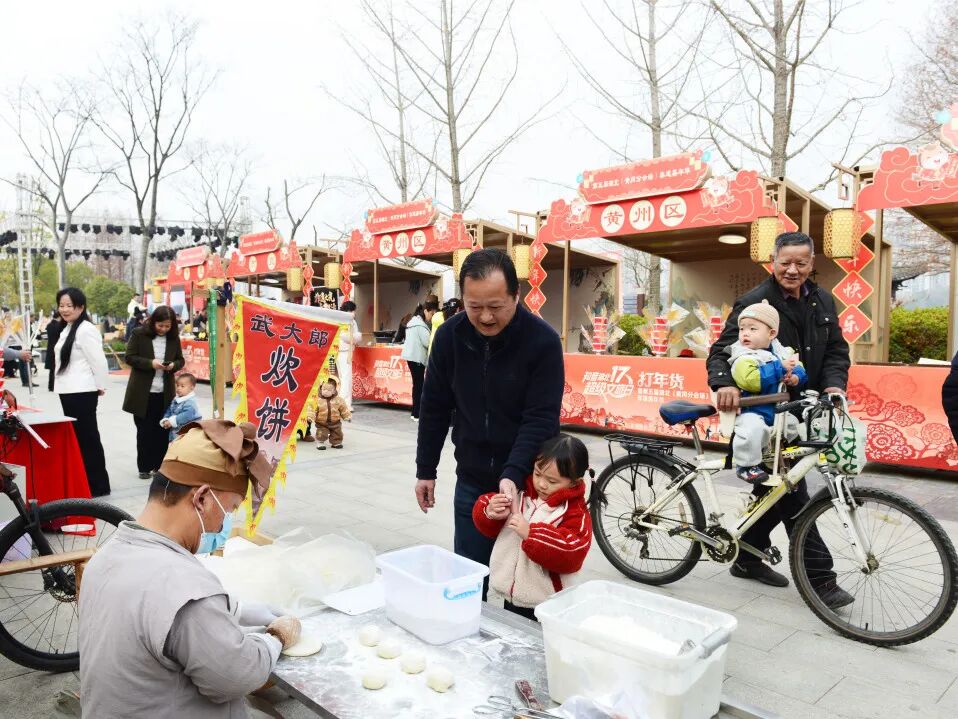 腊月寒风暖,黄州年味浓!1月15日至17日,遗爱湖风情街,人头攒动,热闹非凡,2026年首场“知音湖北 超级文旅日”暨第五届湖北非遗嘉年华(黄冈分会场)活动在这里火热上演。这场由省文旅厅主办,市发展全域大文旅工作专班承办,东坡文旅区、省黄梅戏剧院、 市群众艺术馆(市非遗中心)、各县(市、区)文旅局、黄商集团、中建三局城投运营公司、黄冈文旅集团执行的非遗盛会,汇集了全市近40个非遗项目、近50位非遗传承人和一批黄冈地标优品和农特产品,让市民游客一站式品非遗、囤年货、赏东坡,热闹喜庆的年味铺满了遗爱湖风情街。