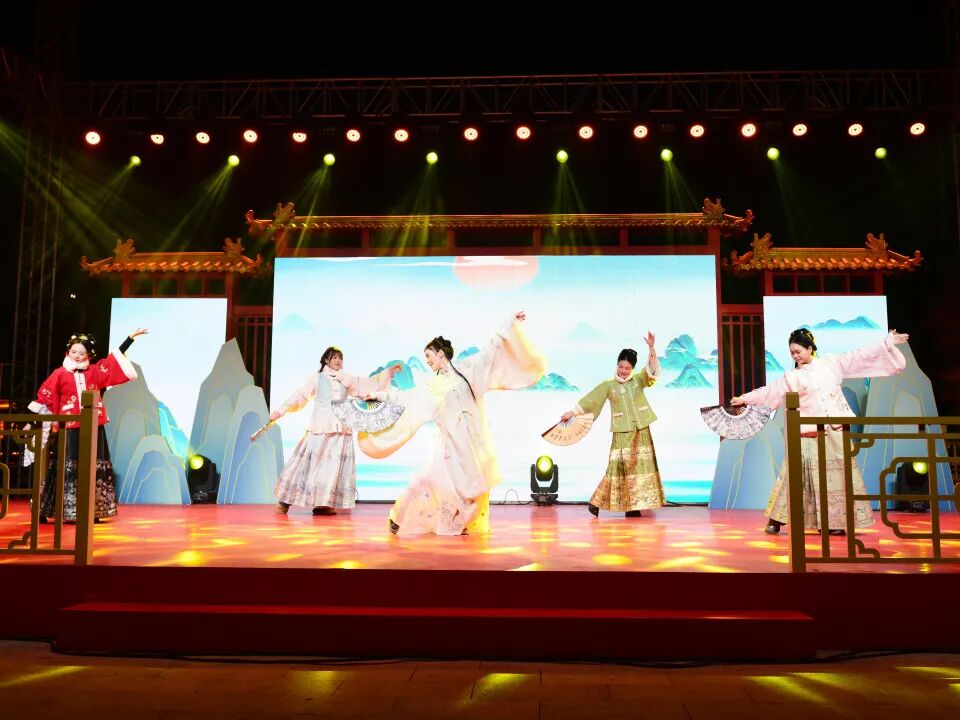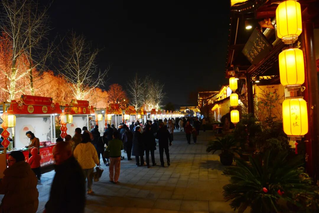 白天逛市集囤年货,夜游遗爱湖又是另一番景象。“从此东坡”水上沉浸式夜游活动让游客乘着古风画舫,在流光溢彩的灯阵和明月下,穿梭于东坡诗词的意境之中。声光电影秀如梦如幻,仿佛穿越时空与东坡先生对话。与此同时,风情街舞台每晚的惠民演出也吸引了大批观众,黄梅戏、民歌、舞蹈轮番上演,为寒冷的冬夜增添了无限暖意。
